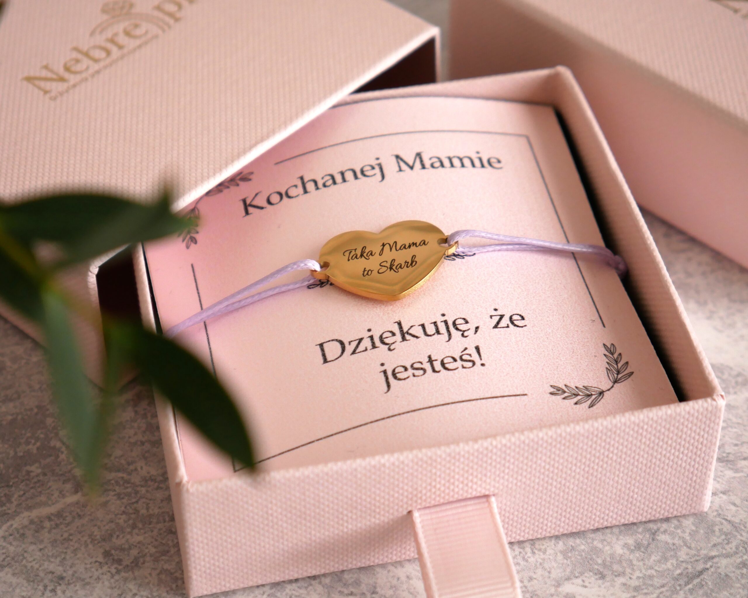 – Bransoletka zapakowana w różowe pudełeczko z karteczką – Kochanej Mamie